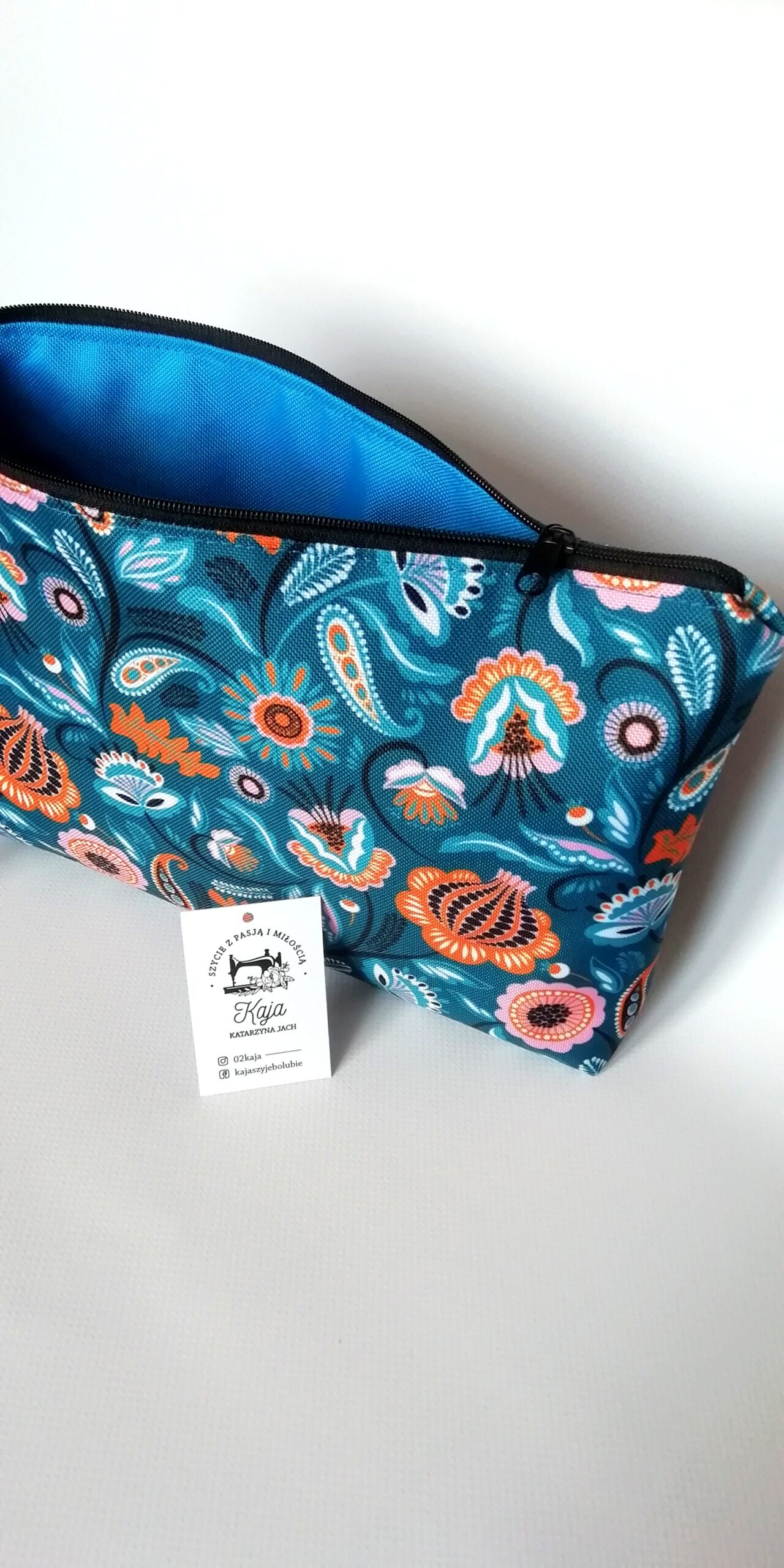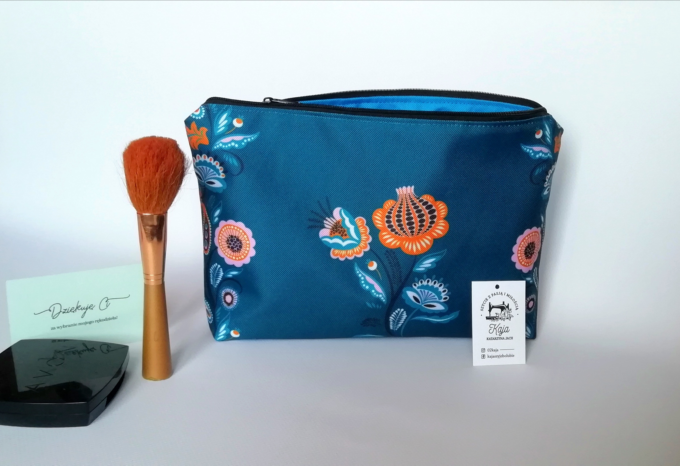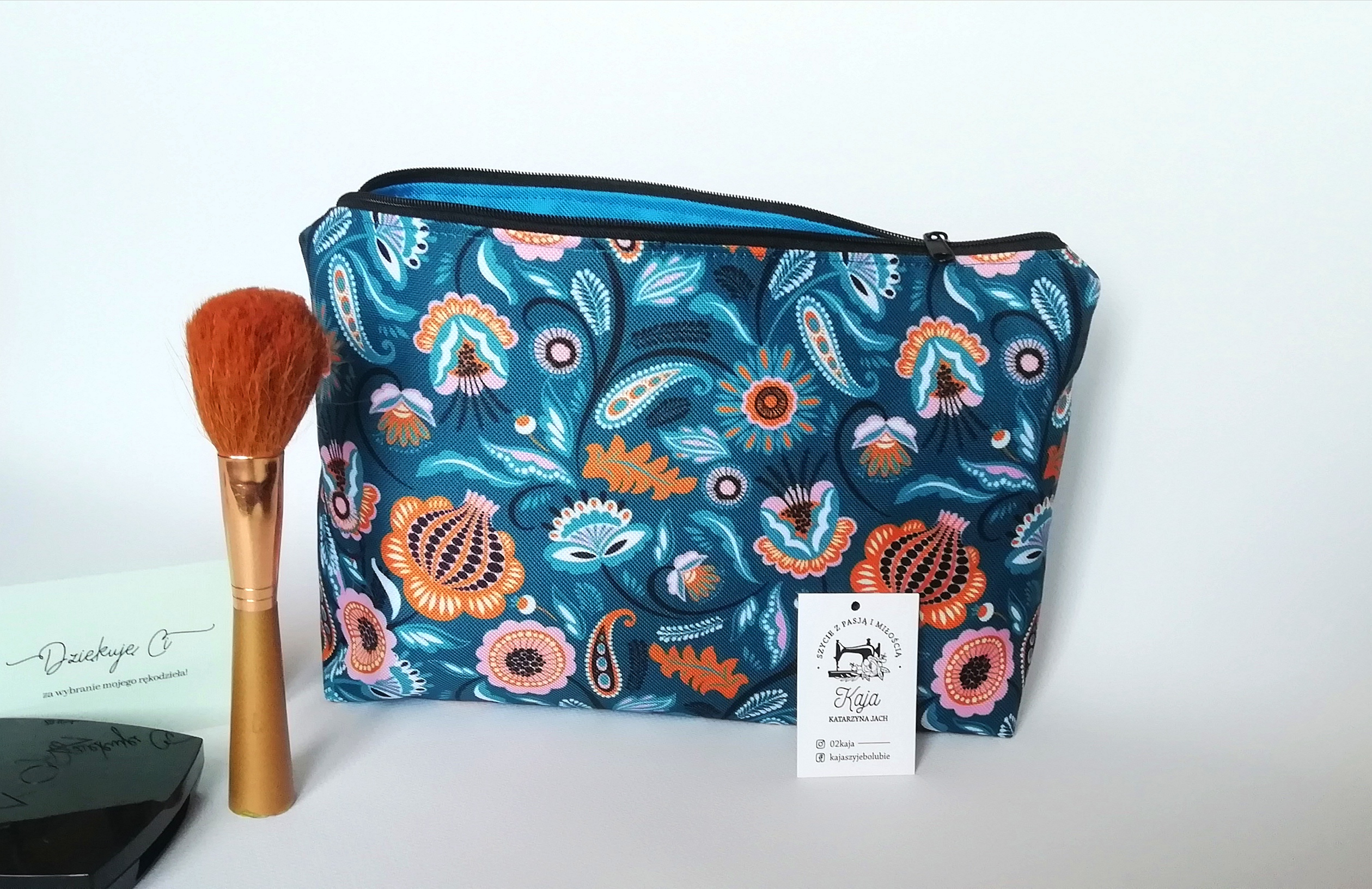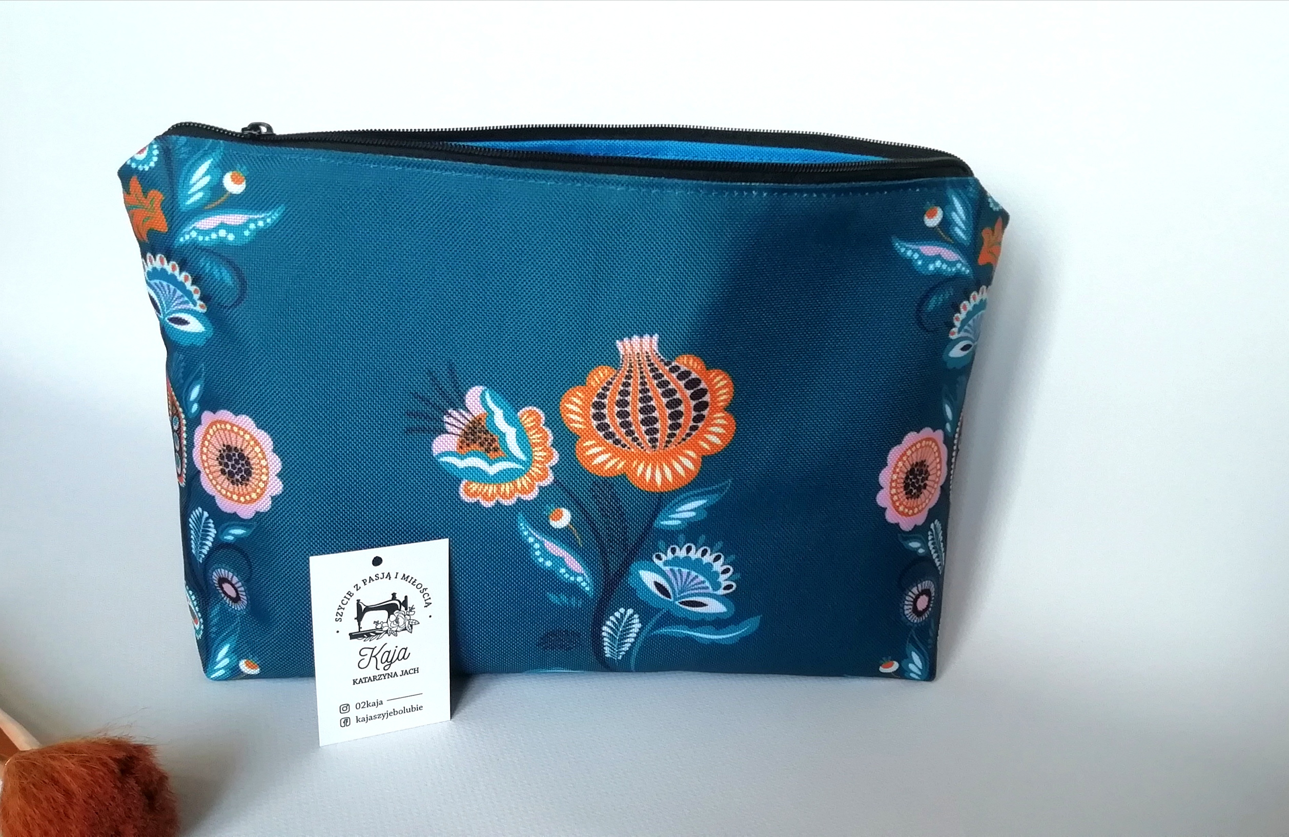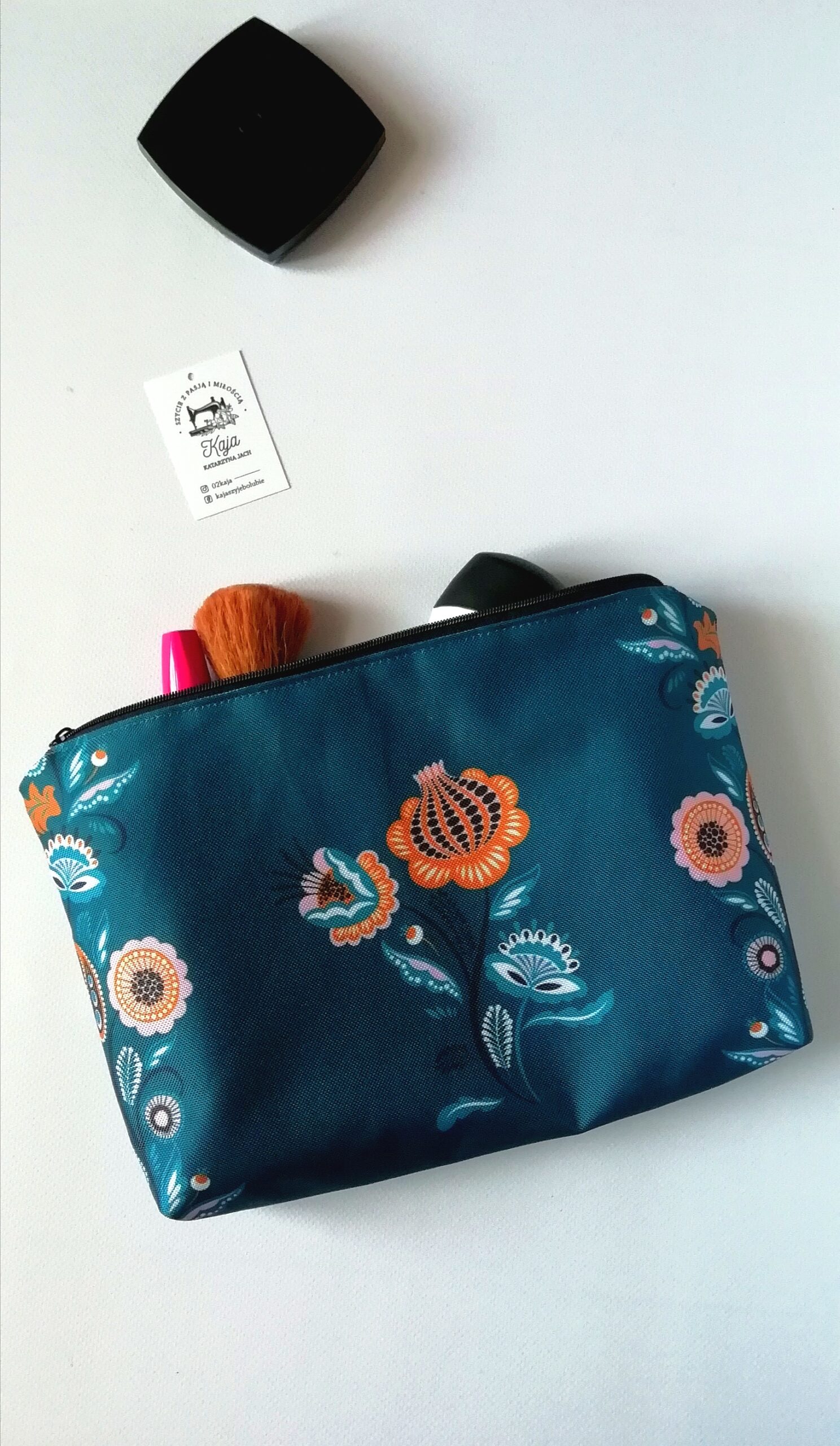Kosmetyczki zapinane są na zamek, wykonane z tkaniny wodoodpornej, posiadają podszewkę. Kolor podszewki i zamka dobierany jest losowo. Jesli masz inne życzenie proszę o kontakt przed zakupem. Są łatwe w utrzymaniu czystości.