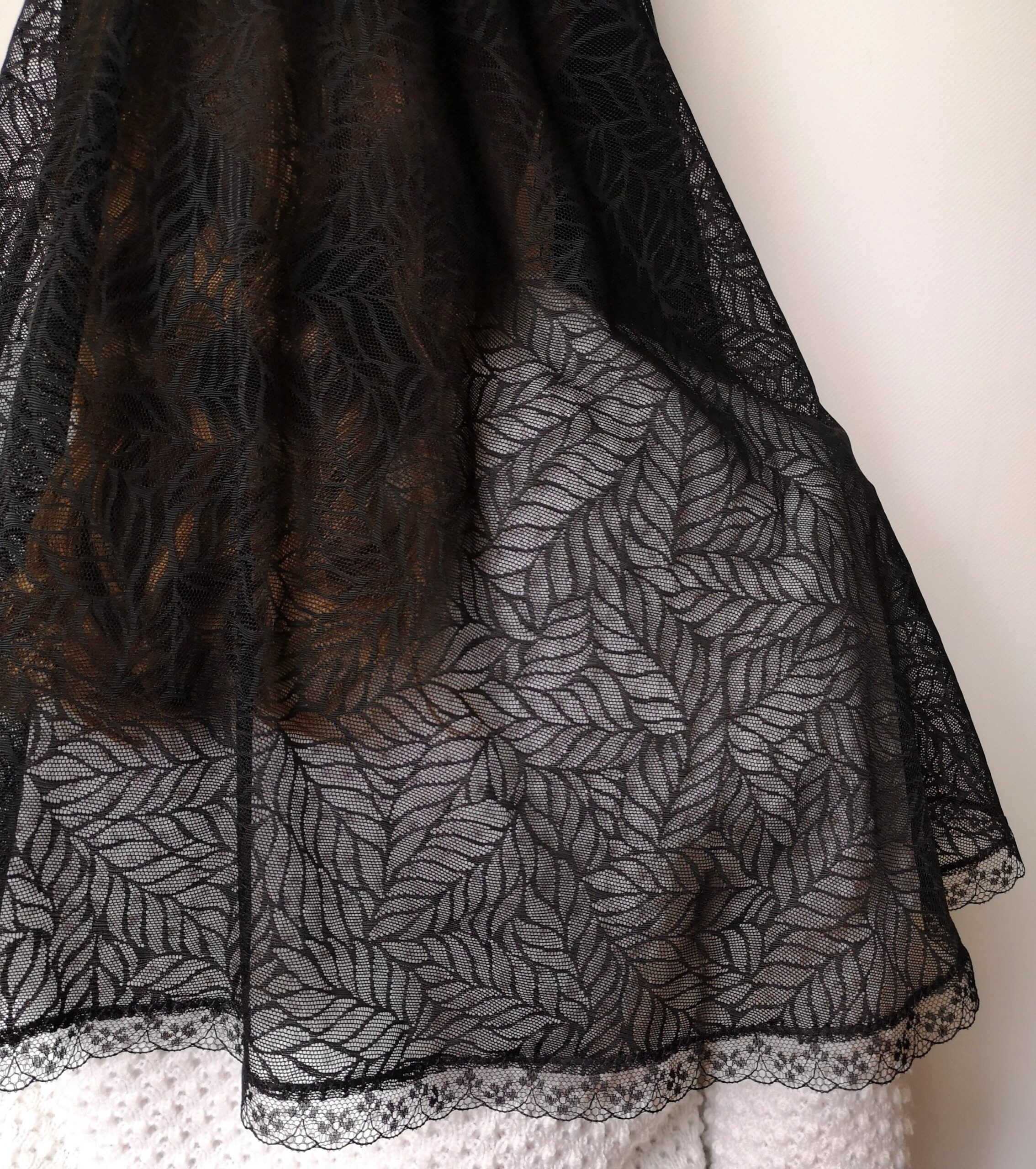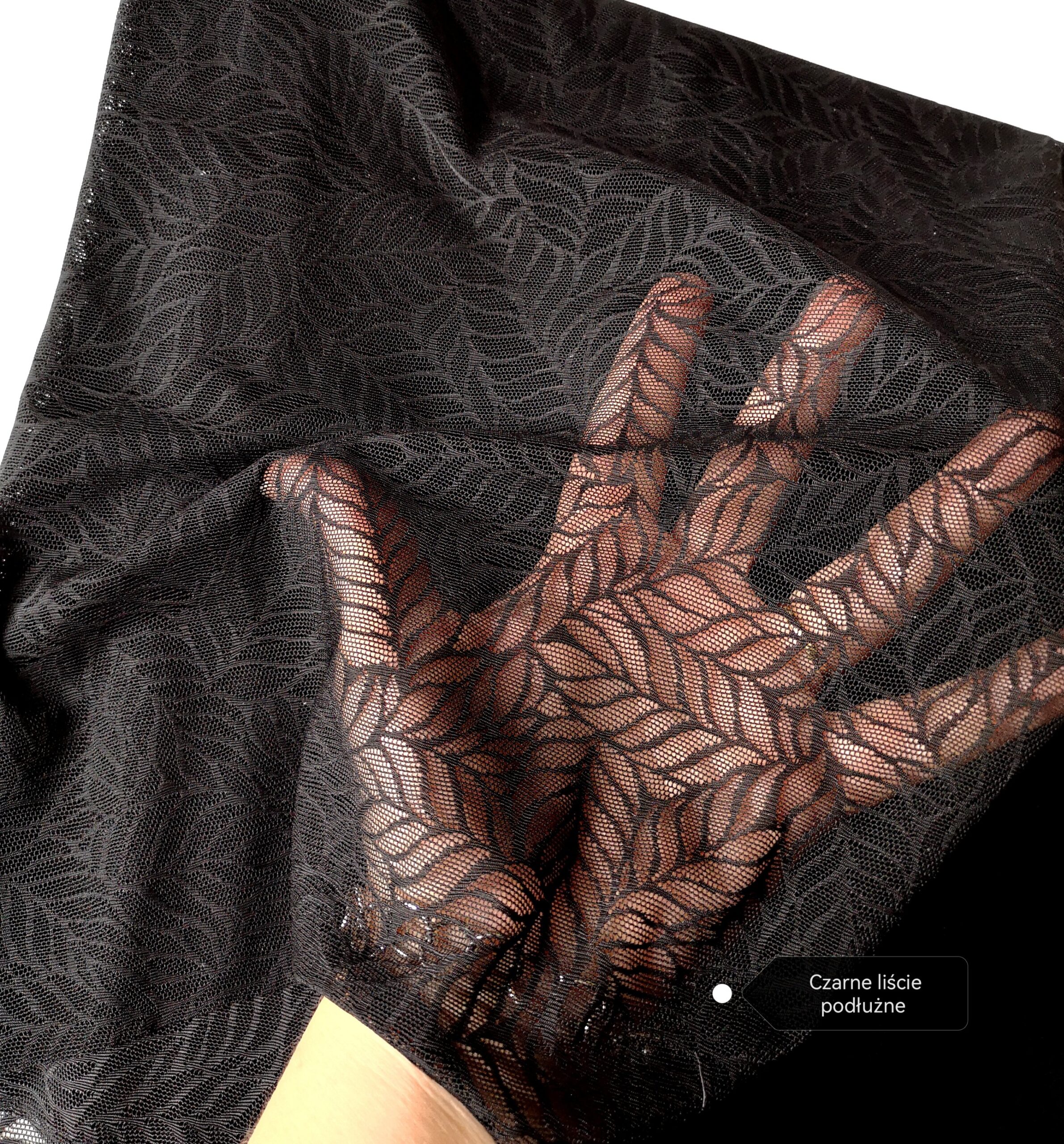 Wzór nr 25 – koronka  czarna w liście podłużne, lekka, zwiewna.