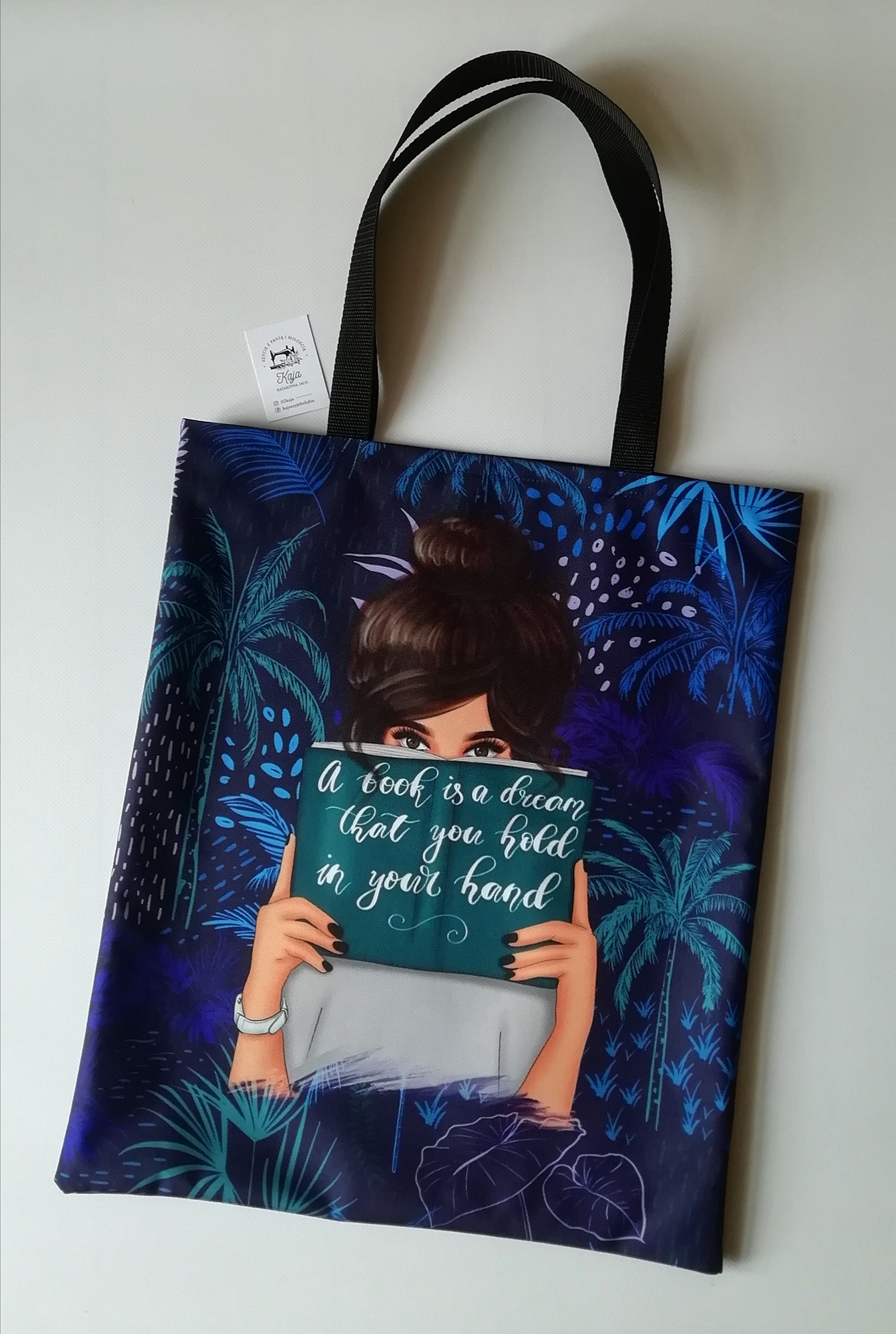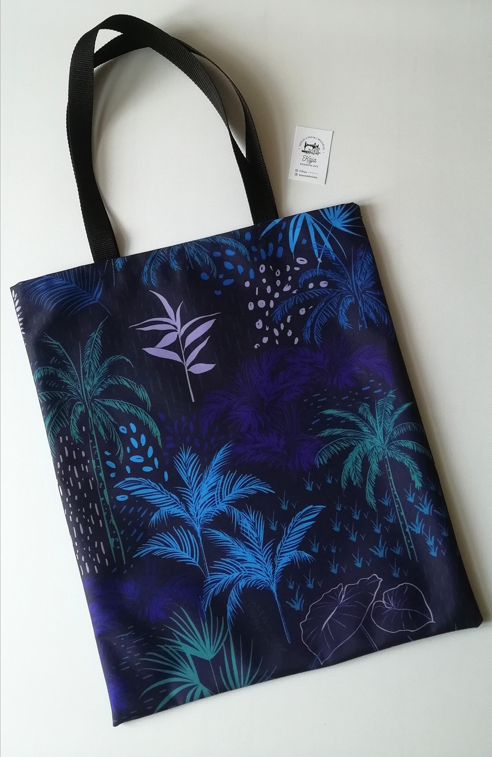 Uszyte są z wysokiej jakości tkaniny wodoodpornej oxford. Gotowa torba ma wymiar około 48×38 cm. Rączki około 60 cm. Prosta torba typu szoperka. Nie posiada podeszewki, zamków i kieszeni. Więcej realizacji na stronie https://www.kajakatarzynajach.pl/p/torby.html