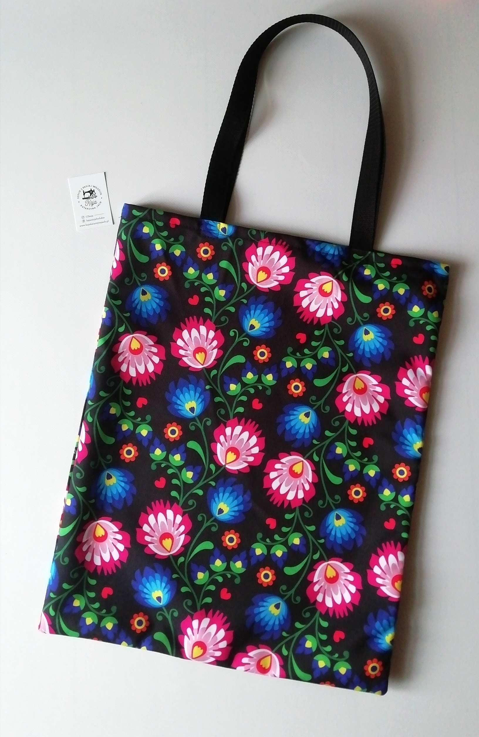 Uszyte są z wysokiej jakości tkaniny wodoodpornej oxford. Gotowa torba ma wymiar około 38×48 cm. Rączki około 60 cm. Prosta torba typu szoperka. Nie posiada podeszewki, zamków i kieszeni. Więcej realizacji na stronie https://www.kajakatarzynajach.pl/p/torby.html